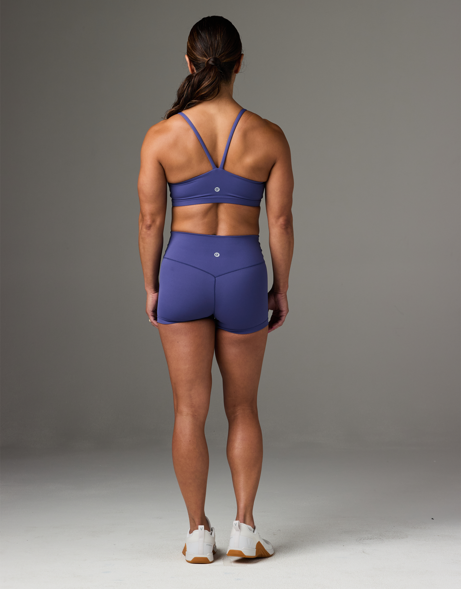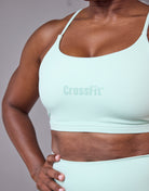Clean lines, bold impact. This minimalist sports bra features a gel print CrossFit on the front and a reflective CF on the back — because less really is more.